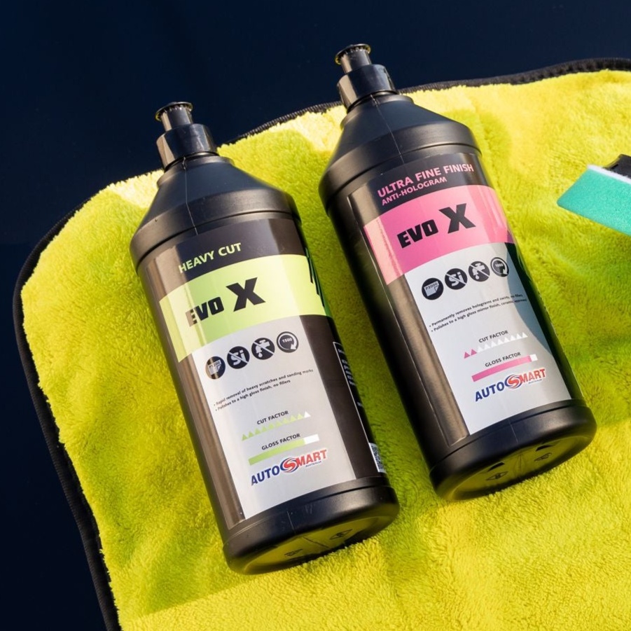 Evo X is a next-generation cutting compound designed for rapid removal of deep scratches, heavy swirls, and sanding marks. It delivers fast, high-performance cutting with a flawless high-gloss finish. This advanced formula ensures a superior finish with no fillers and minimal dusting.