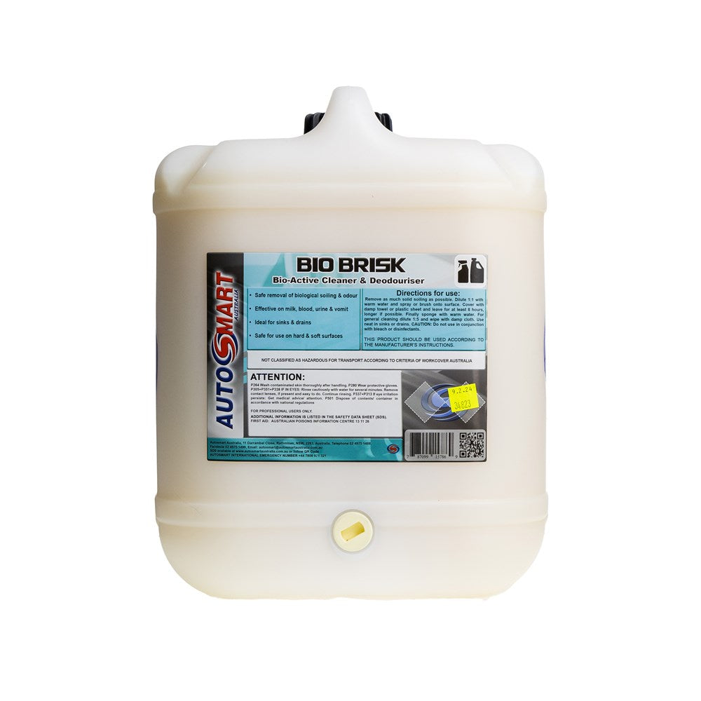 A specialist biological cleaner that safely breaks down soiling such as grease, oil, protein, and fat. Bio Brisk is ideal for use on fabrics, carpets, blocked sinks, and drains, effectively removing all biological soiling and odours, including milk, blood, urine, vomit, and nicotine.