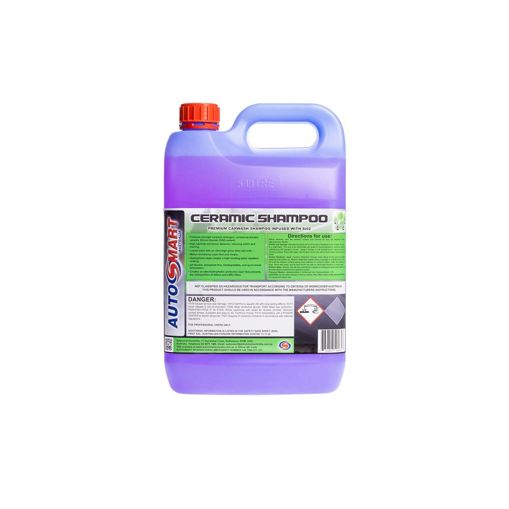 Add approximately 50ml of Ceramic Shampoo to 5 litres of water and agitate to create a high foam. The use of an AutoSmart grit guard is recommended to minimize sediment collecting on the sponge or brush. Using a sponge or noodle mitt, evenly rub over the vehicle?s surface, paying extra attention to stubborn marks. Rinse with water, and for best results, dry with an AutoSmart chamois or drying towel.