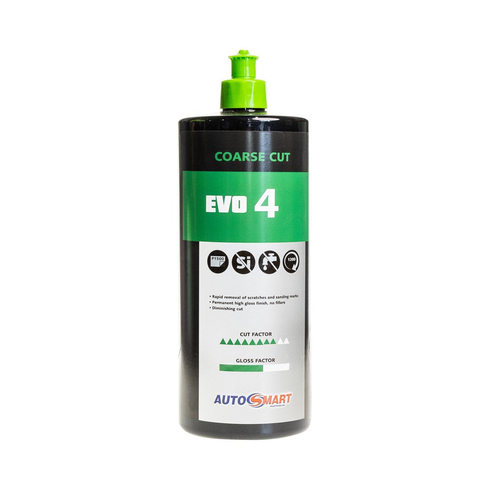 Evo 4 is a versatile cutting compound for removing scratches, deep marring, and water/acid etching, ideal for sanding mark correction. It delivers a high-gloss finish and features a water-based formula for easy cleanup.