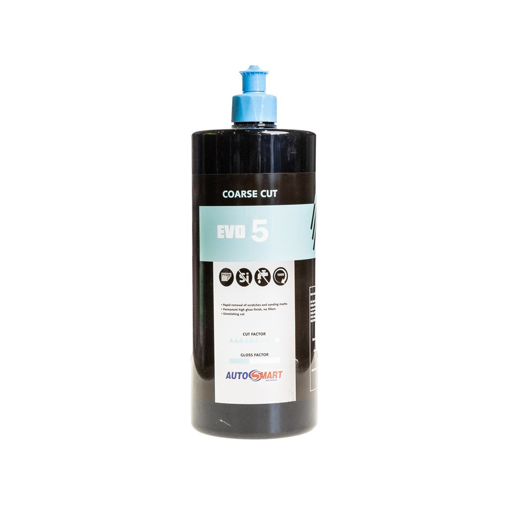 Evo 5 is a cutting compound designed for paint correction, including the removal of scratches, deep marring, and water/acid etching. It's perfect for oxidised paint, fibreglass, and gel coat finishes, and is ideal for correcting sanding marks. The water-based formula ensures easy cleanup.