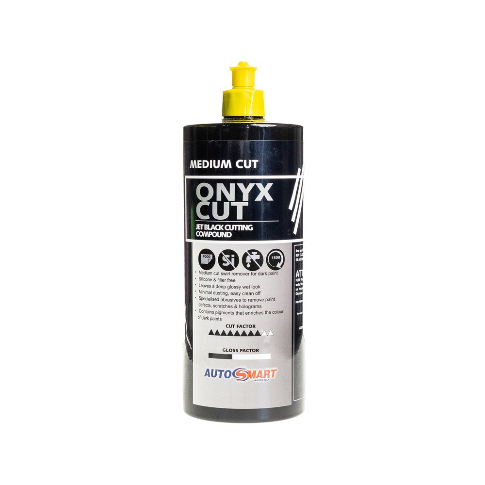 Onyx Polish uses aluminium oxide abrasives and a polymer polish to remove swirls, fine scratches, and surface imperfections. It restores dull paint to a smooth, high-gloss finish with deep shine.