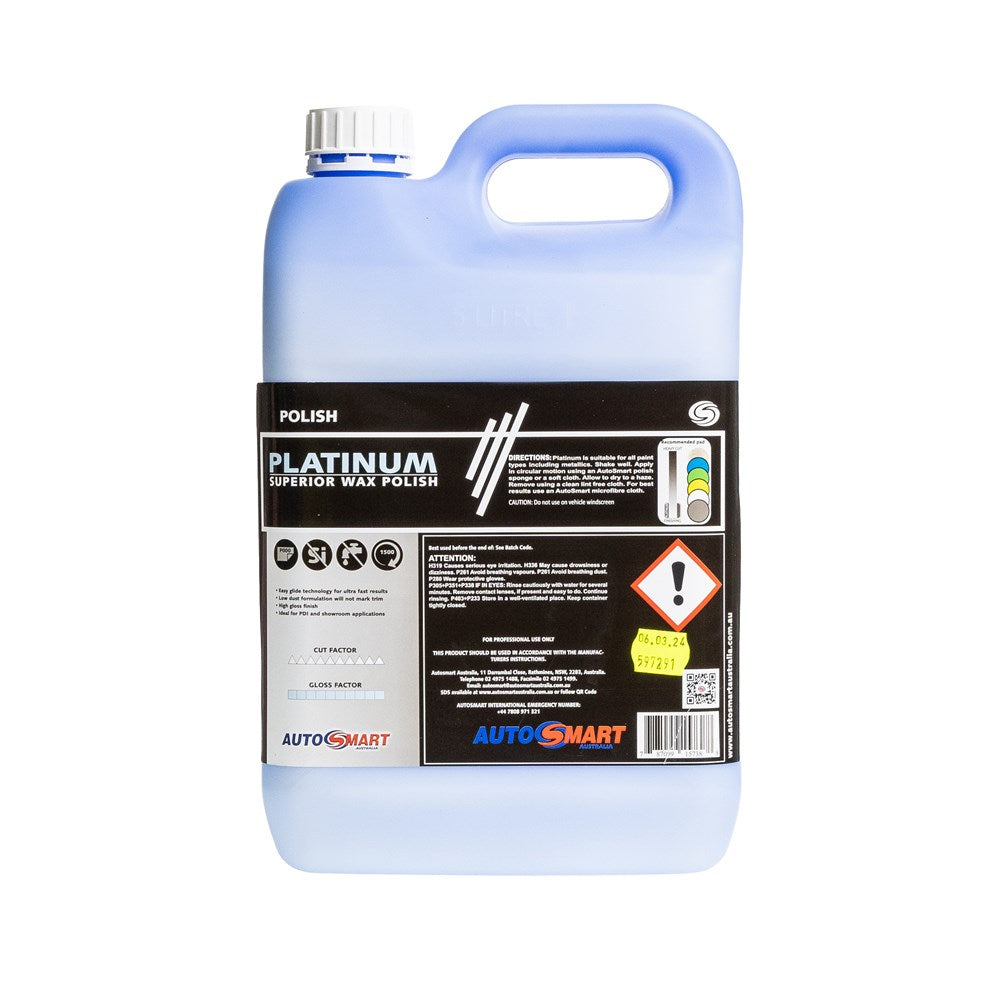 AutoSmart Platinum Polish is a premium polymer wax polish designed for new and quality paintwork. Its advanced formula bonds to the surface, creating a long-lasting, weather-resistant protective coating that delivers a deep, high-gloss shine. Suitable for all paint types, including metallic finishes, Platinum polish is versatile for both hand and machine application, offering a low-dust formulation that won?t mark trim.